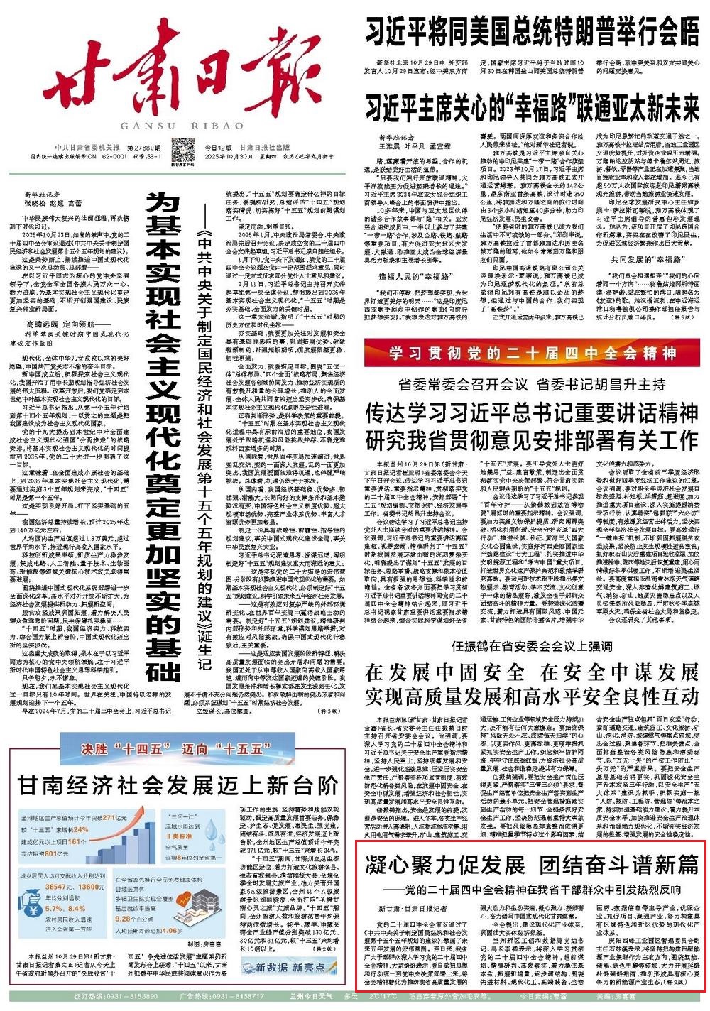 黨的二十屆四中全會審議通過了《中共中央關(guān)于制定國民經(jīng)濟和社會發(fā)展第十五個五年規(guī)劃的建議》,擘畫了未來五年發(fā)展的宏偉藍圖。連日來,我省廣大干部群眾深入學習黨的二十屆四中全會精神,大家紛紛表示,要自覺把思想和行動統(tǒng)一到黨中央決策部署上來,將全會精神轉(zhuǎn)化為推動我省高質(zhì)量發(fā)展的強大動力和生動實踐,凝心聚力,接續(xù)奮斗,奮力譜寫中國式現(xiàn)代化甘肅篇章。