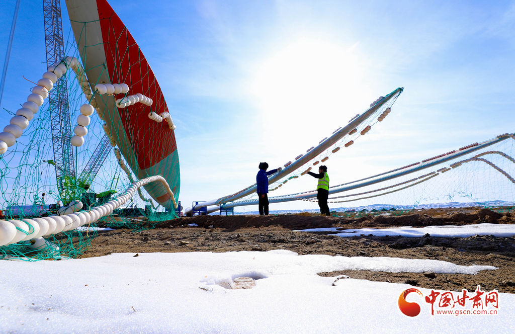 2月21日,張掖市臨澤縣板橋北灘20萬千瓦光伏發(fā)電項目建設(shè)現(xiàn)場,工作人員正在進(jìn)行發(fā)電前的設(shè)備調(diào)試。