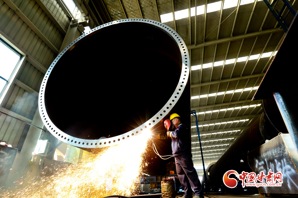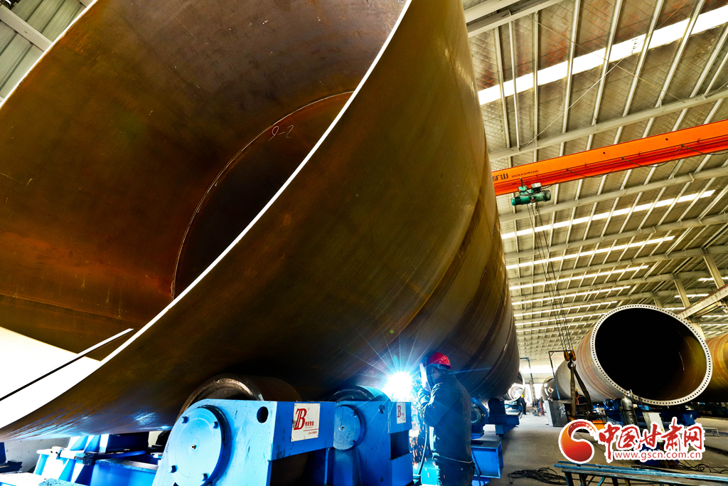 近日,在高臺縣一風電裝備生產(chǎn)基地內(nèi),工人們正在加快訂單生產(chǎn),進行設(shè)備調(diào)試,保障風力發(fā)電機組的生產(chǎn)運行。