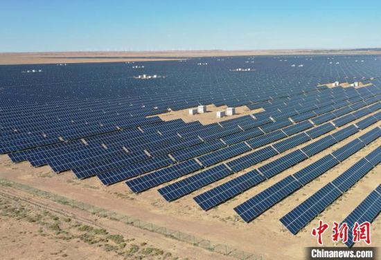 航拍視角下,金昌市西坡光伏產業(yè)園區(qū)內的光伏發(fā)電陣列。(資料圖)國網甘肅省電力公司調度控制中心供圖