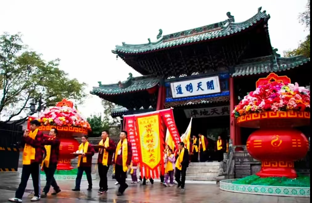 上午九點(diǎn),趙氏天水堂內(nèi)旌旗招展、鼓樂同鳴。趙氏宗親代表隊(duì)及舞獅隊(duì)、鑼鼓隊(duì)、嗩吶隊(duì)、腰鼓隊(duì)等前往伏羲廟拜謁中華人文始祖伏羲。隨后,祭祖大典在古樸大方、莊嚴(yán)肅穆的趙氏天水堂正式拉開帷幕。