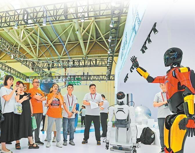 蘭州館內(nèi),參觀者與機器人展開互動。本組圖片攝影:新甘肅·甘肅日報記者 田蹊