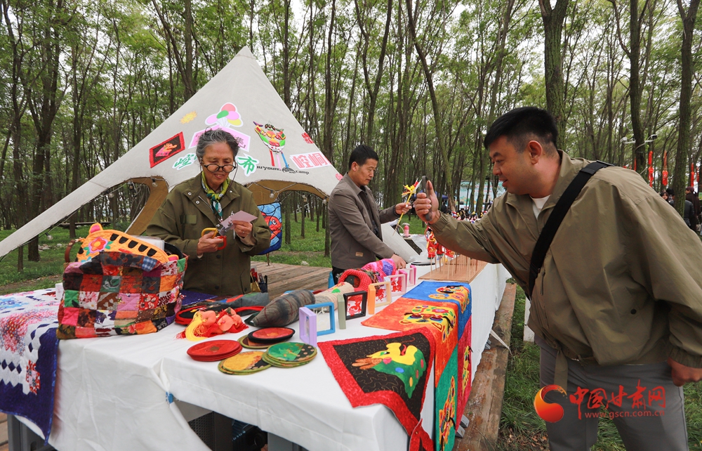 活動現(xiàn)場還設置了非遺展示區(qū)與美食品鑒區(qū),天津剪布、面塑與崆峒剪紙、泥塑等交相輝映,羊肉泡饃、釀皮、油馓子等鄉(xiāng)土美食香氣四溢,讓現(xiàn)場觀眾愛不釋手。