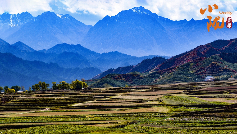 秋風(fēng)溫柔,山川壯美。祁連山腳下,泛黃的草原如同大地鋪開的地毯,伸向天際。遠(yuǎn)處的山川,近處的村莊、樹木沉浸在金色的光芒中,一幅五彩斑斕的秋景圖。