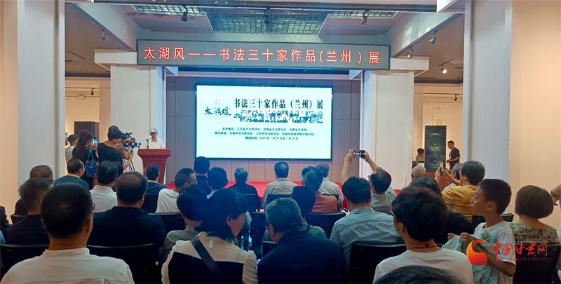 中國(guó)甘肅網(wǎng)7月26日訊(西北角·中國(guó)甘肅網(wǎng)記者 宋芳科)7月26日下午,由江蘇省書協(xié)、甘肅省書協(xié)、甘肅省藝術(shù)館主辦,無(wú)錫市書協(xié)、蘭州市書協(xié)、民盟中央美術(shù)院無(wú)錫分院承辦的太湖風(fēng)·書法三十家作作品(蘭州)展在甘肅省藝術(shù)館揭幕,展覽將持續(xù)至7月30日。