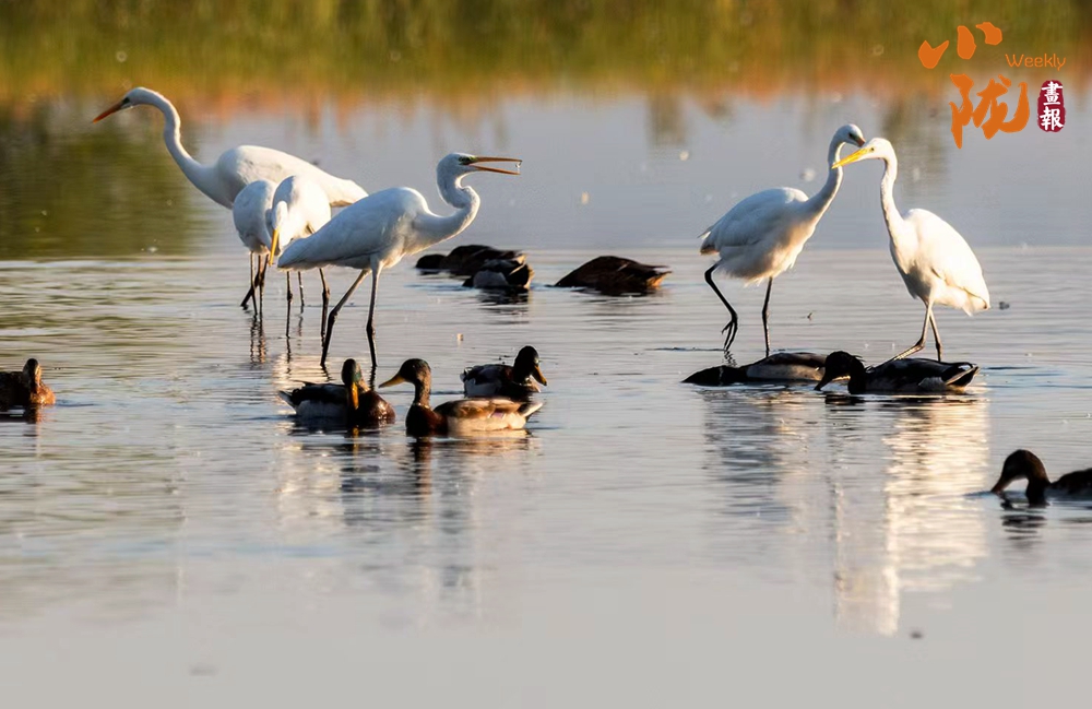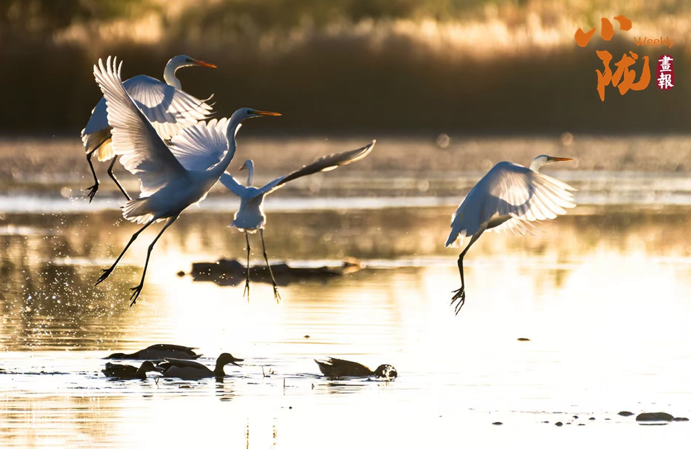春天,這里萬物復蘇,蘆葦新綠,候鳥歸來,整個公園充滿生機。它們依水而居,或在水中游泳和潛水,或在淺水、灘地與岸邊涉行,或在其上空飛行,引得游人們駐足觀看,構(gòu)成一幅人與自然和諧共生的生態(tài)畫卷。