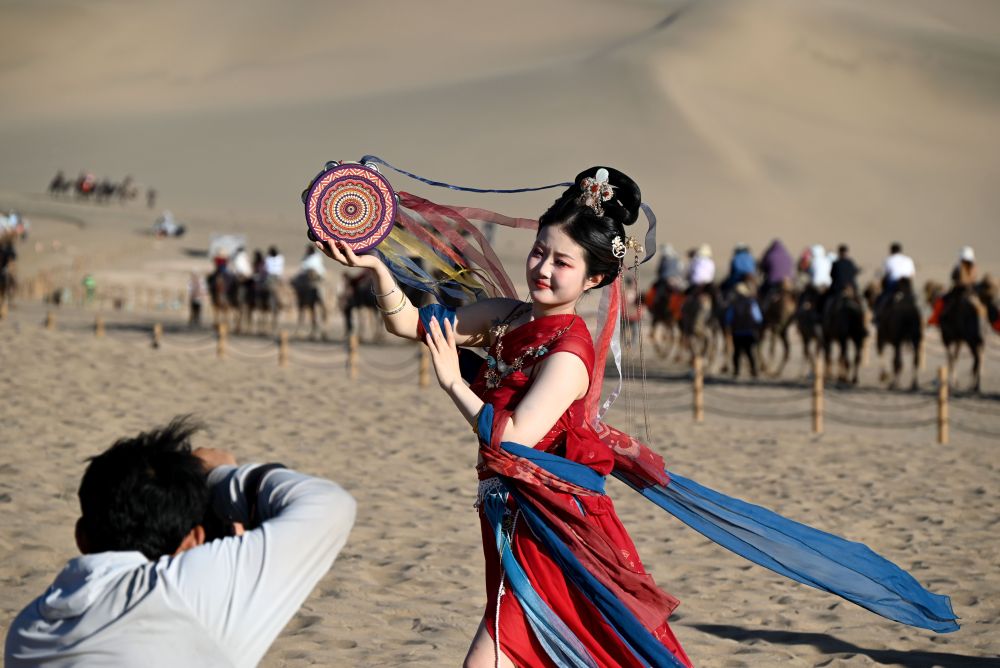 近年來(lái),甘肅省敦煌市深入挖掘特色資源,推出旅游優(yōu)惠政策措施、智能化體驗(yàn)服務(wù)和低空飛行、旅拍等文旅項(xiàng)目產(chǎn)品,不斷豐富文旅業(yè)態(tài),激發(fā)文旅消費(fèi)新動(dòng)能。據(jù)敦煌市文旅部門(mén)統(tǒng)計(jì)數(shù)據(jù)顯示,今年1至4月份,敦煌市旅游接待人數(shù)538.78萬(wàn)人次,同比增長(zhǎng)25.8%。