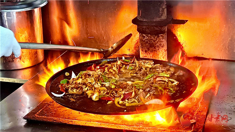 后來這種烹飪方式漸漸被當?shù)匕傩諏W會并加以改良,以牛、羊雜為主要食材,放在鐵鏊子上炒制,山丹炒撥拉由此而來。