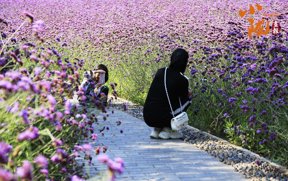 這個季節(jié),各種花卉依舊開放,尤其是粉黛亂子草更是以草為名,比花還美,默默延續(xù)著黃河花堤從春到秋的浪漫氣息。