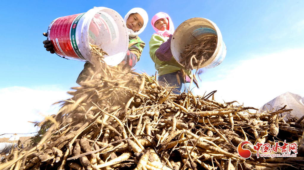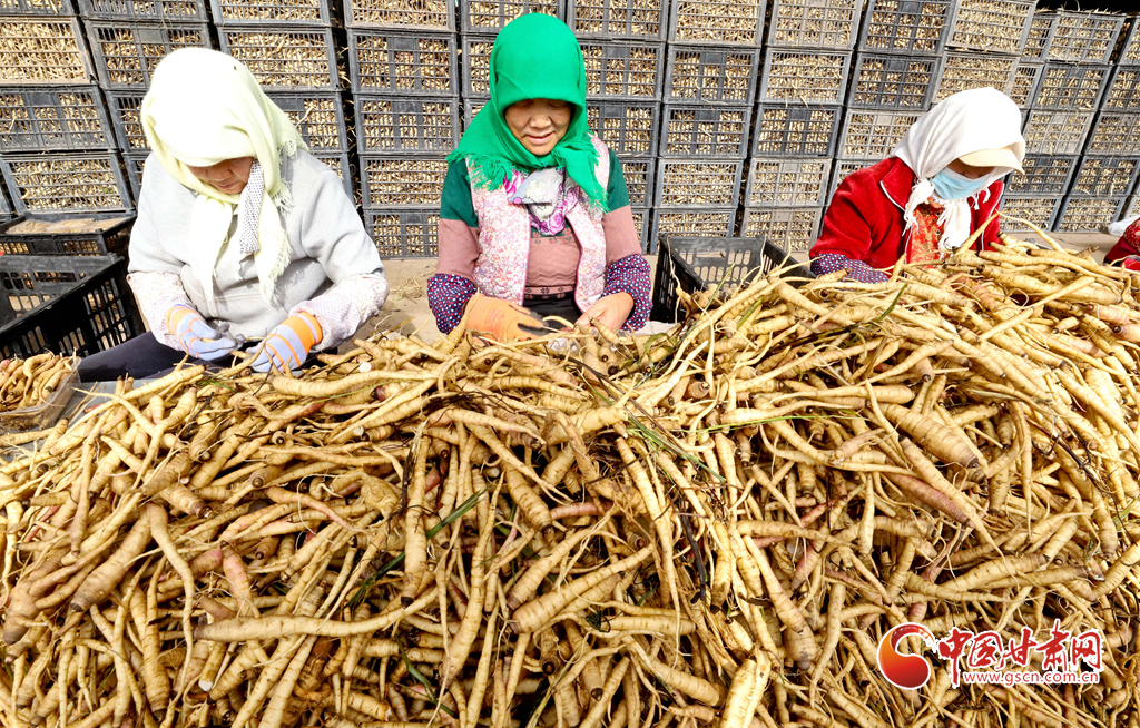 連日來,張掖市山丹縣李橋鄉(xiāng)5000多畝黃參種植基地一片繁忙,收獲機(jī)往來穿梭,新采的黃參在田邊匯集后,被運往加工中心進(jìn)行清洗、分揀和包裝,隨后發(fā)往北京、天津、上海、四川、重慶、山東、安徽等省市。