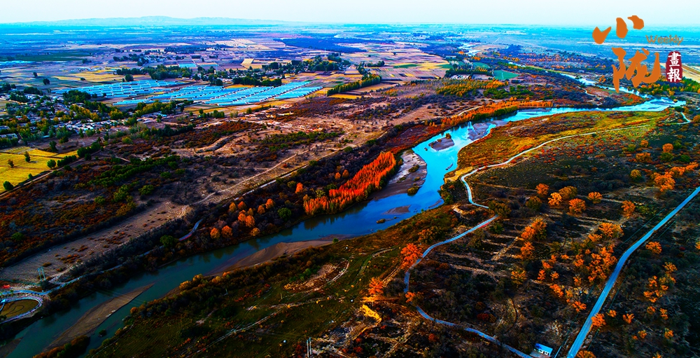 河堤兩岸各種樹木及灌木疊翠流金,綿延數(shù)里;碧波蕩漾,林鳥相依,呈現(xiàn)出獨(dú)具特色的沙漠濕地風(fēng)貌。